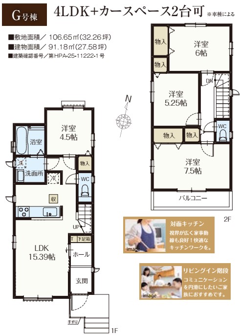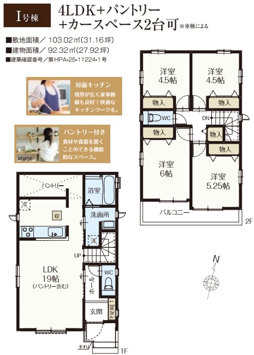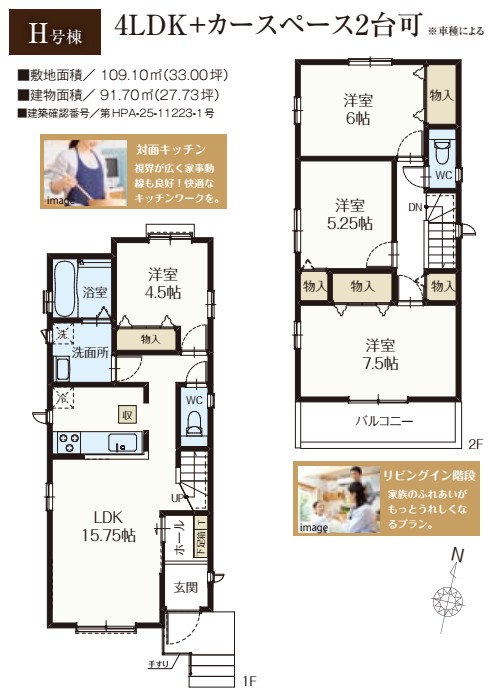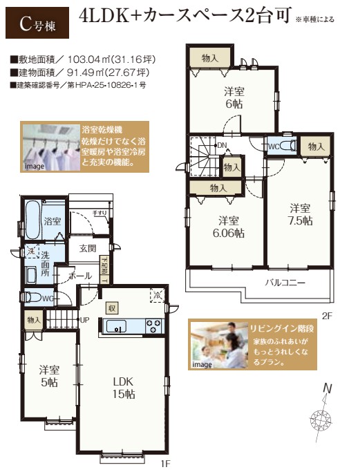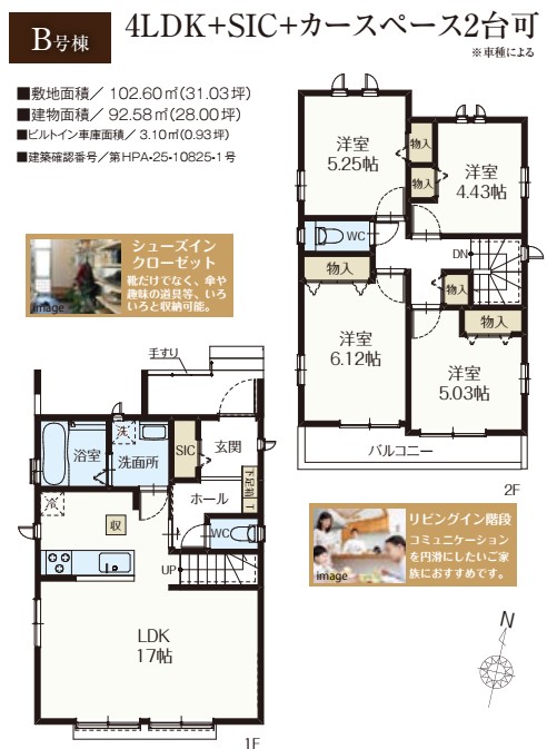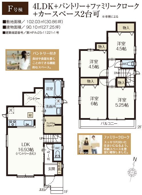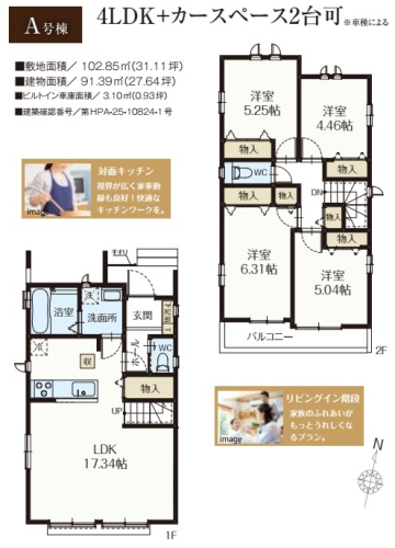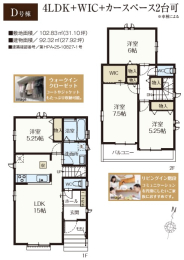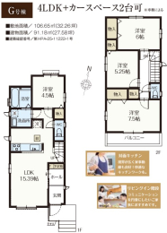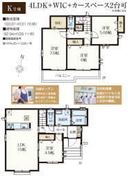 土地面積 | 102.03m² (実測) (30.86坪)〜109.1u | 建物面積 | 90.1u〜93.57u |