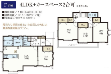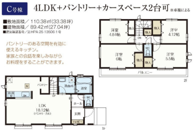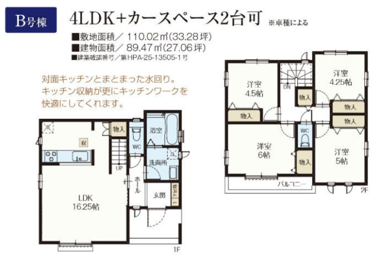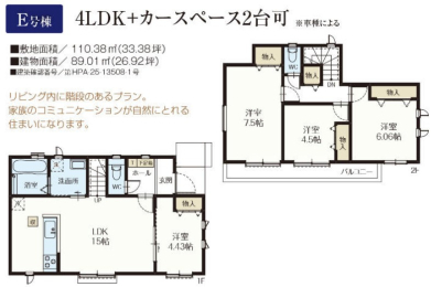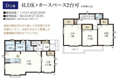 土地面積 | 110.02m² (実測) (33.28坪)〜110.41u | 建物面積 | 89.01u〜93.15u |