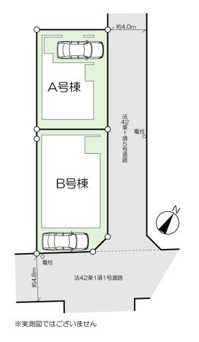 | 現況/引渡し | 更地/相談 | 接道状況 | 接道: 東 4m 私道 接道: 南 4.8m 公道 |