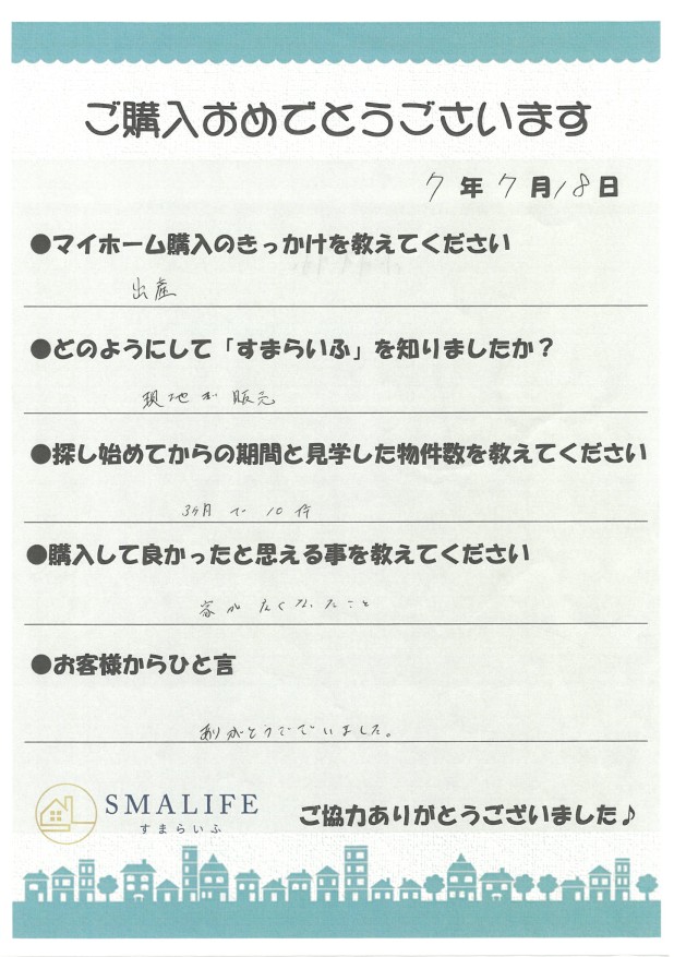 K様 東村山市新築戸建を成約されたお客様の声 | 所沢市の新築一戸建て購入ならすまらいふ